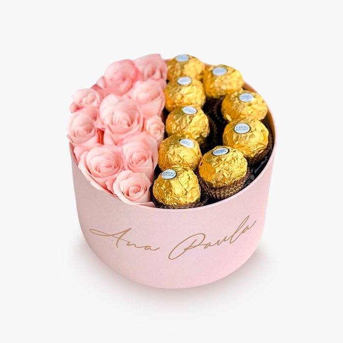 Descubre nuestra elegante combinación: 10 rosas frescas acompañadas de exquisitos chocolates Ferrero Rocher en una caja delicadamente diseñada. Este regalo es perfecto para expresar tus sentimientos de manera única y elegante.