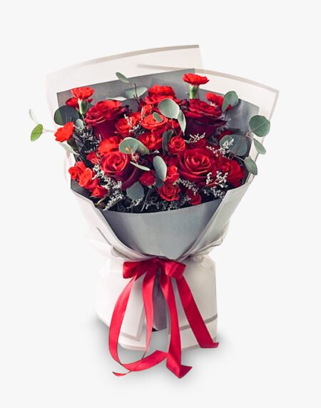 Este ramo de rosas está envuelto de manera elegante, listo para obsequiar. Además, incluye consejos sencillos para mantener las flores frescas por más tiempo, asegurando que su belleza perdure más allá del momento de entrega.